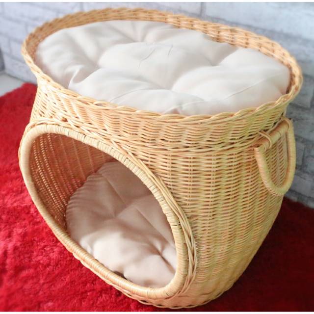 KERANJANG TEMPAT TIDUR KUCING DUA TINGKAT ROTAN LUCU PET ...